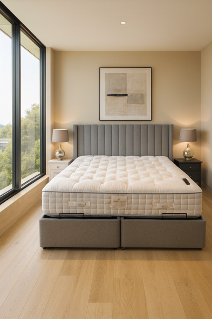 6'0" TEMPUR SUFFOLK ADJUSTABLE BASE WITH 2+2 CONTI DRAWERS, WICKHAM HEADBOARD & HARRISON SPINKS CEZA