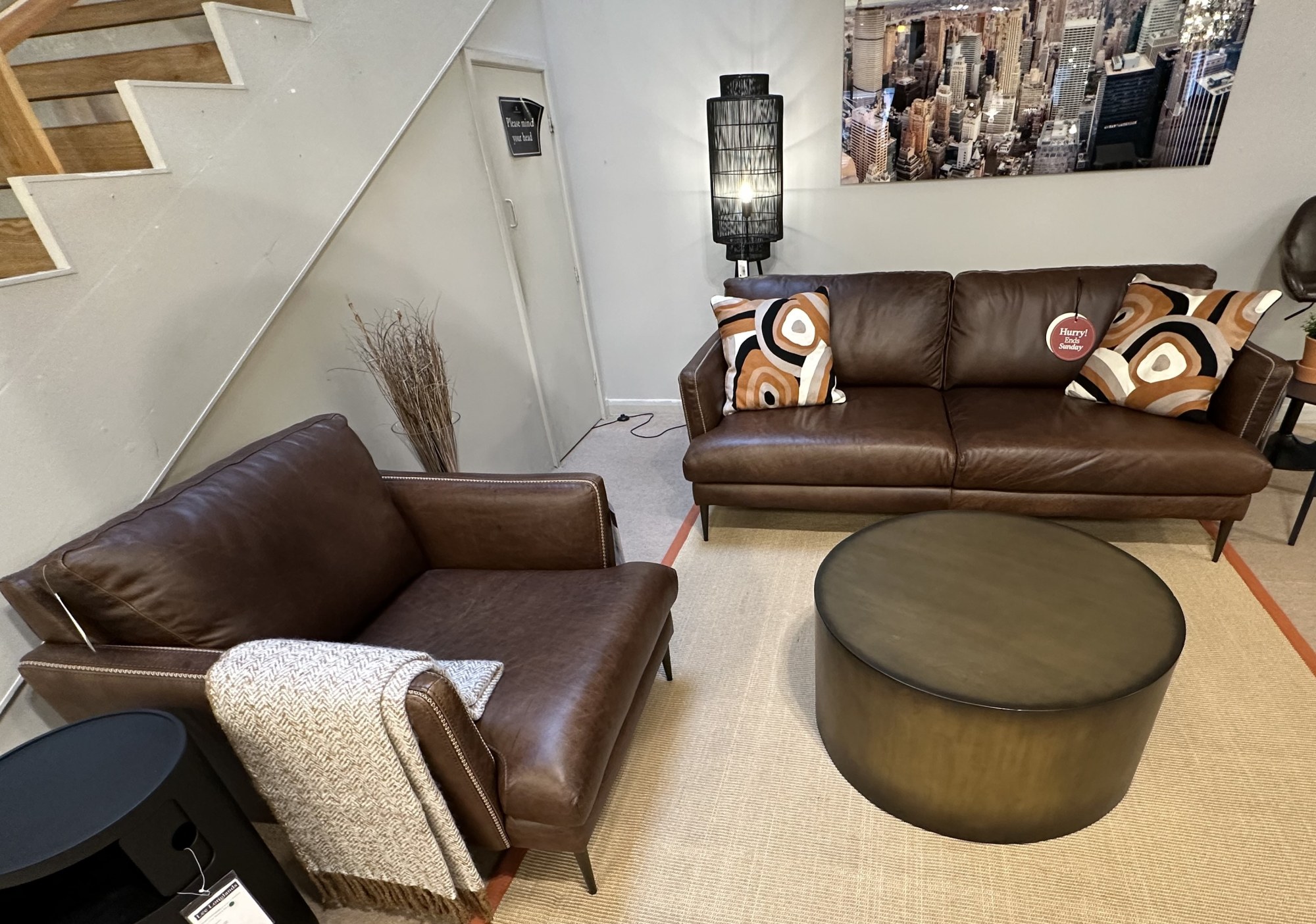 2.5 Seater W197cm D100cm H83cm and Chair W86cm D100cm H83cm both in Leather ...Grade Waco