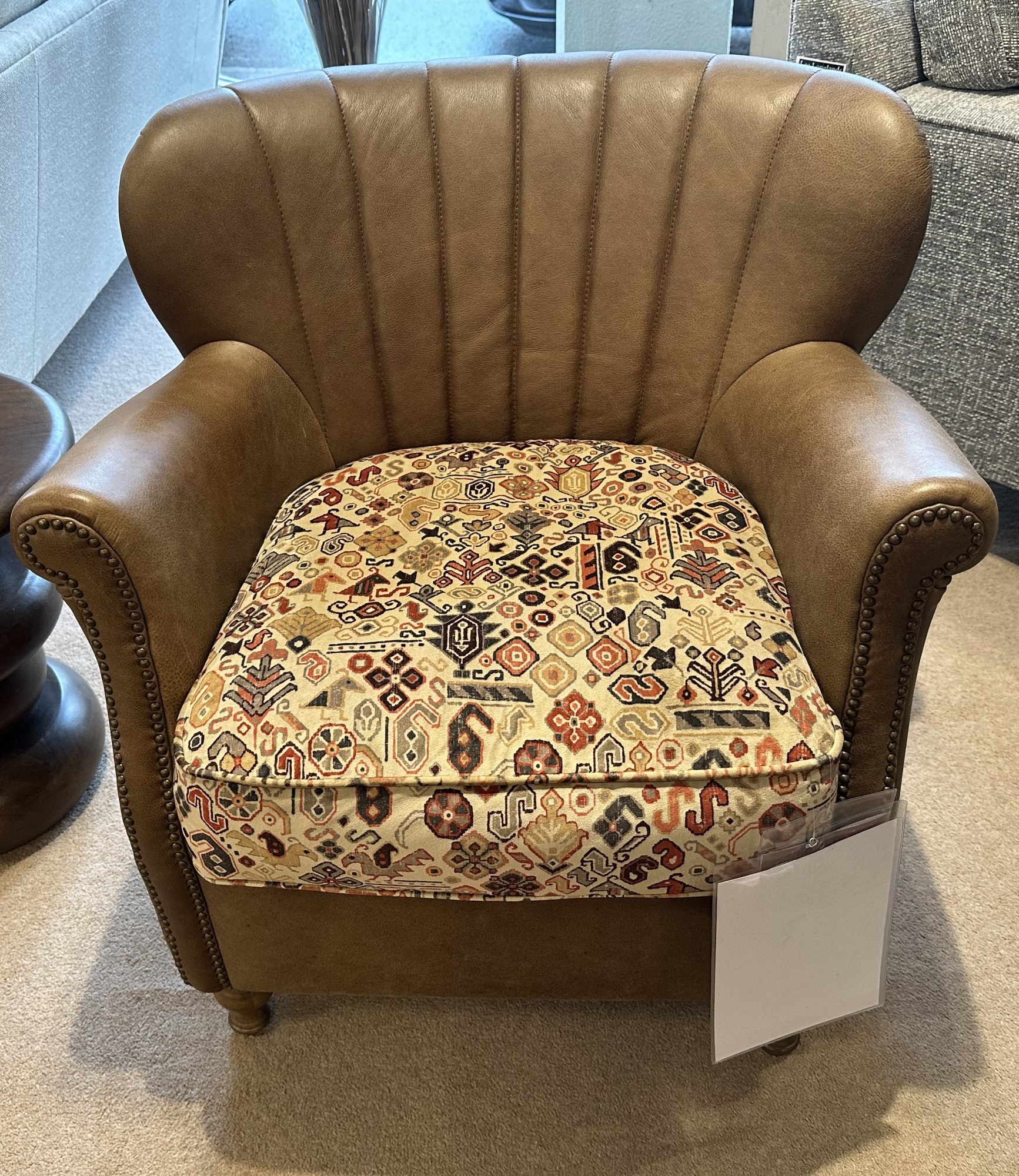 Body in Indiana Tan Leather/Seat in Fabric W70cm D75cm H74cm