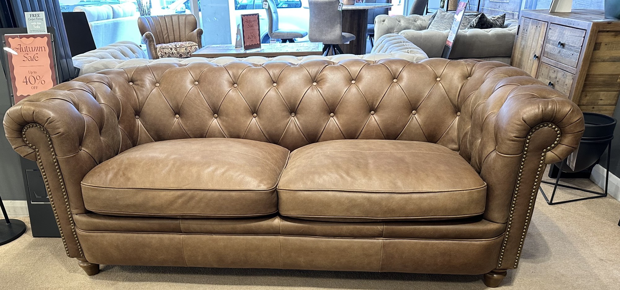 Large Sofa in B grade leather Indiana Tan with Dark feet