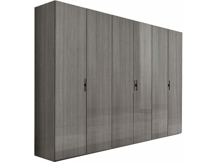 Made in Italy Modern style Silverwood high gloss finish Black metal handles 6 wooden doors 3 shelves 6 hanging rodsProduct Specification