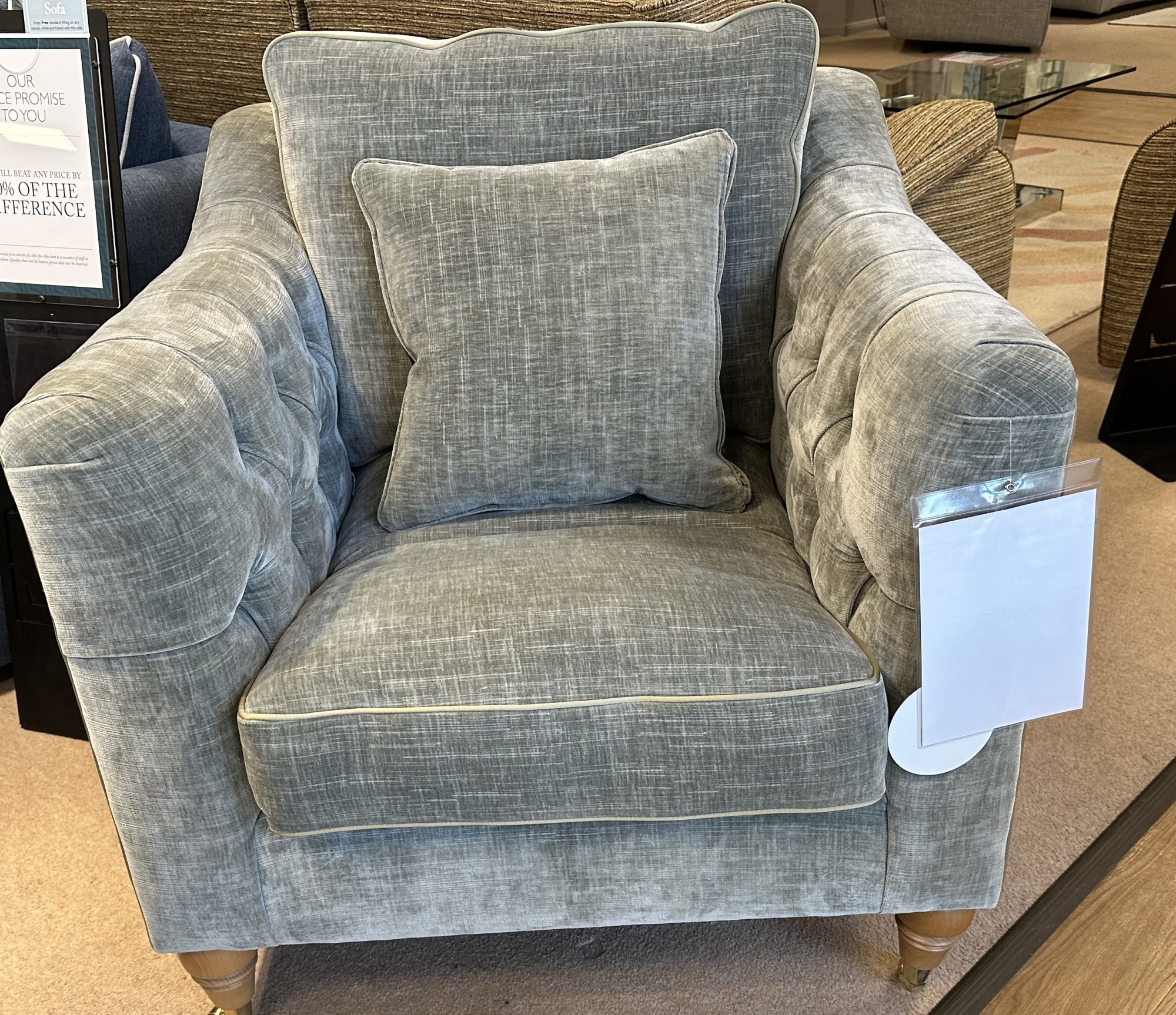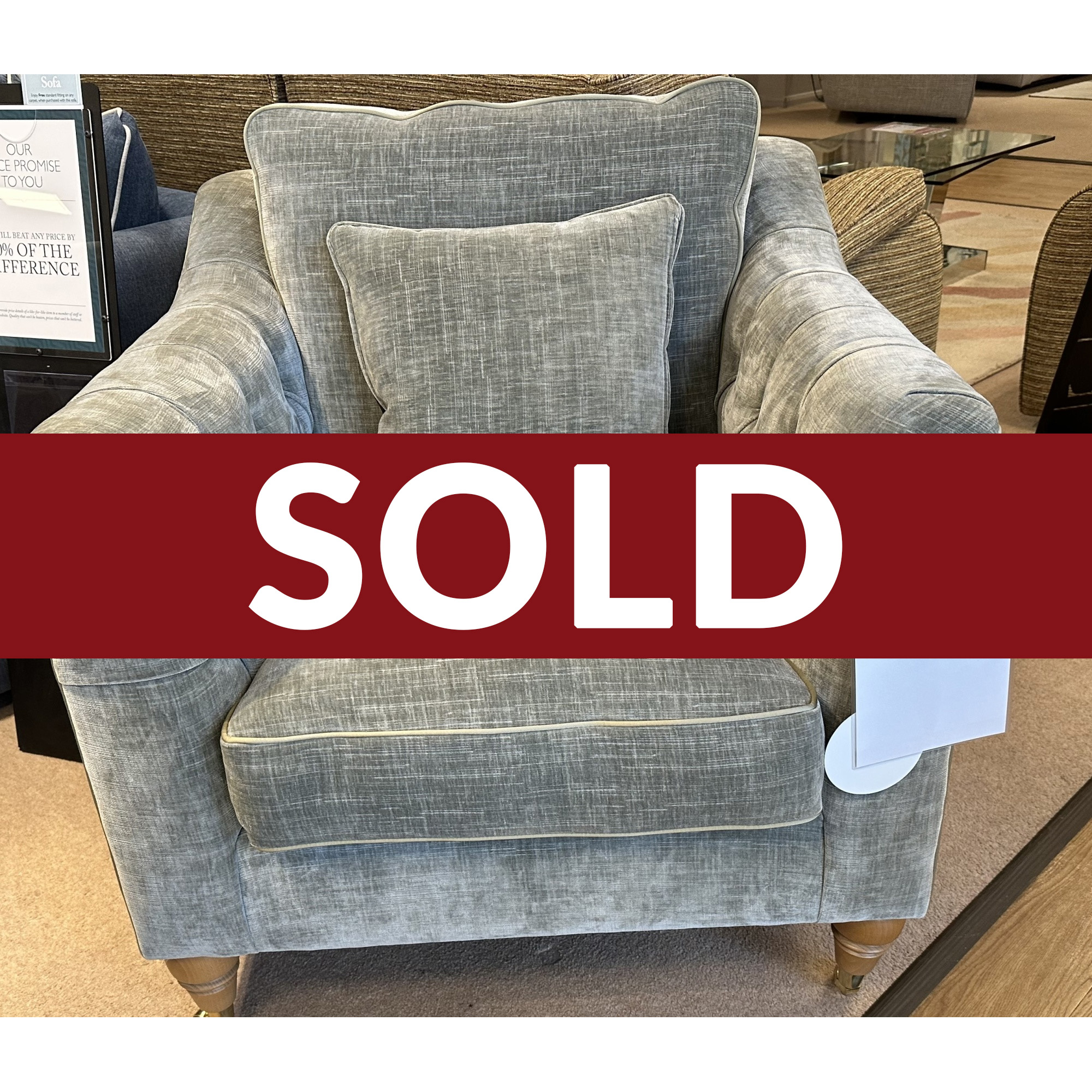 Andrew Paul - Bamburgh Chair Inside and seat in Fabric B with Wrap outside fabric in Linwood Wild multi with Contrast piping and legs Antique Stain.