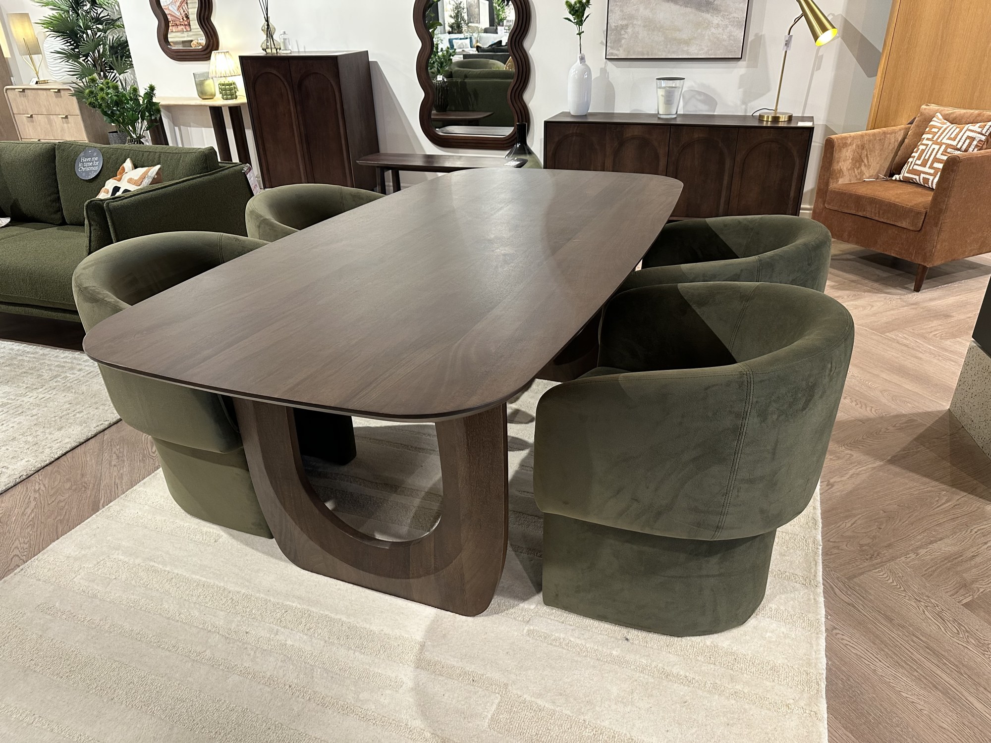 Arc 200x100cm Dining Table and 4x Holm Chairs in Moss Green