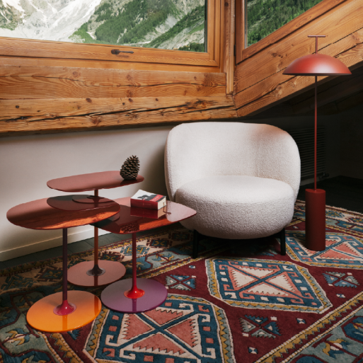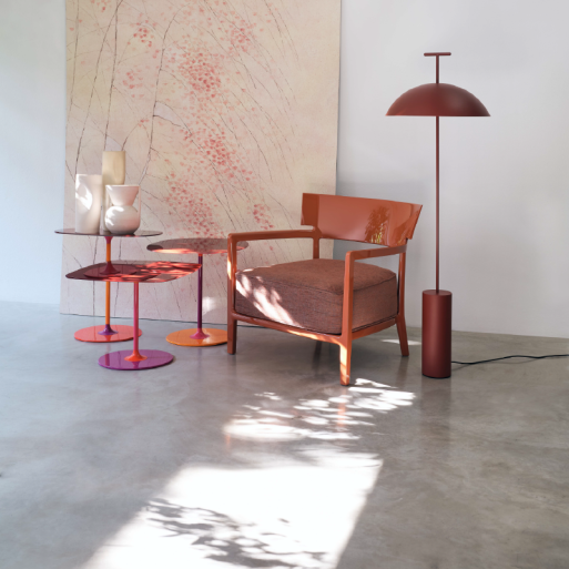 Italian design house Kartell brings dopamine décor to life with sculptural side tables, translucent lamps, and iconic accessories in electrifying colours. Their high-shine surfaces and playful forms are guaranteed conversation starters and ideal for layering texture and light into any space—especially in a dopamine decor kitchen or vibrant home office nook.