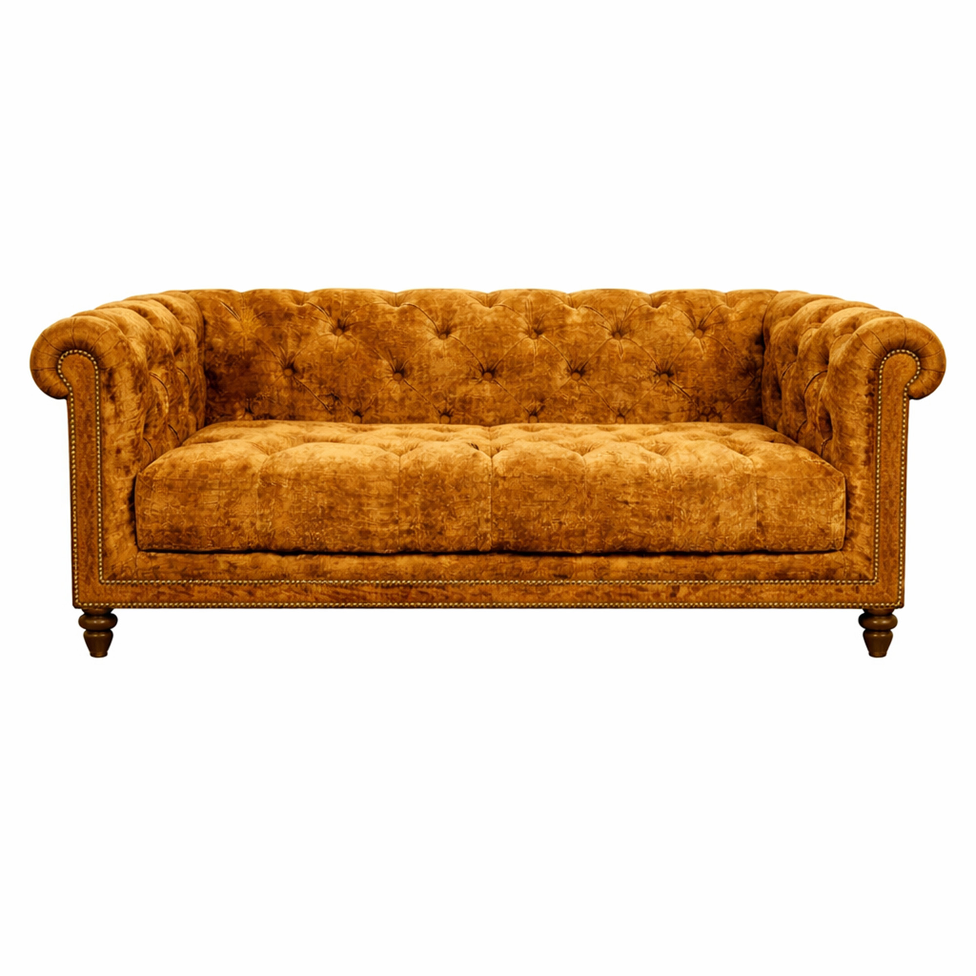 - Gently rolled arms with refined stud detailing