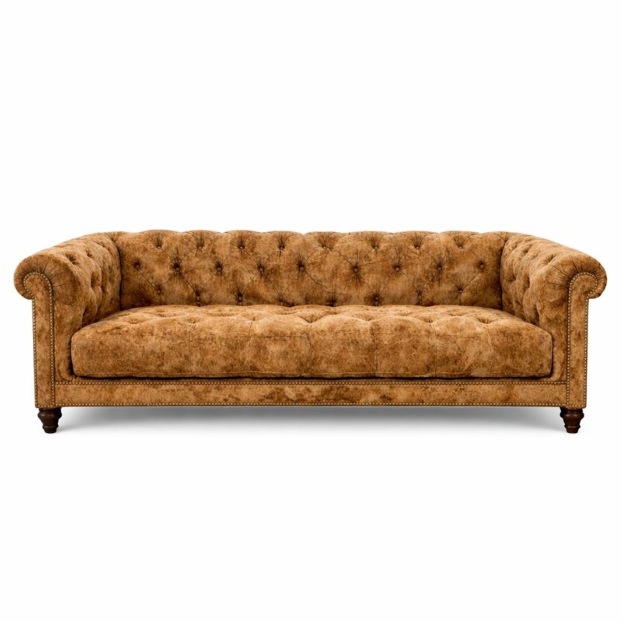 Classic Chesterfield-inspired design with deep button tufting across the back and arms
