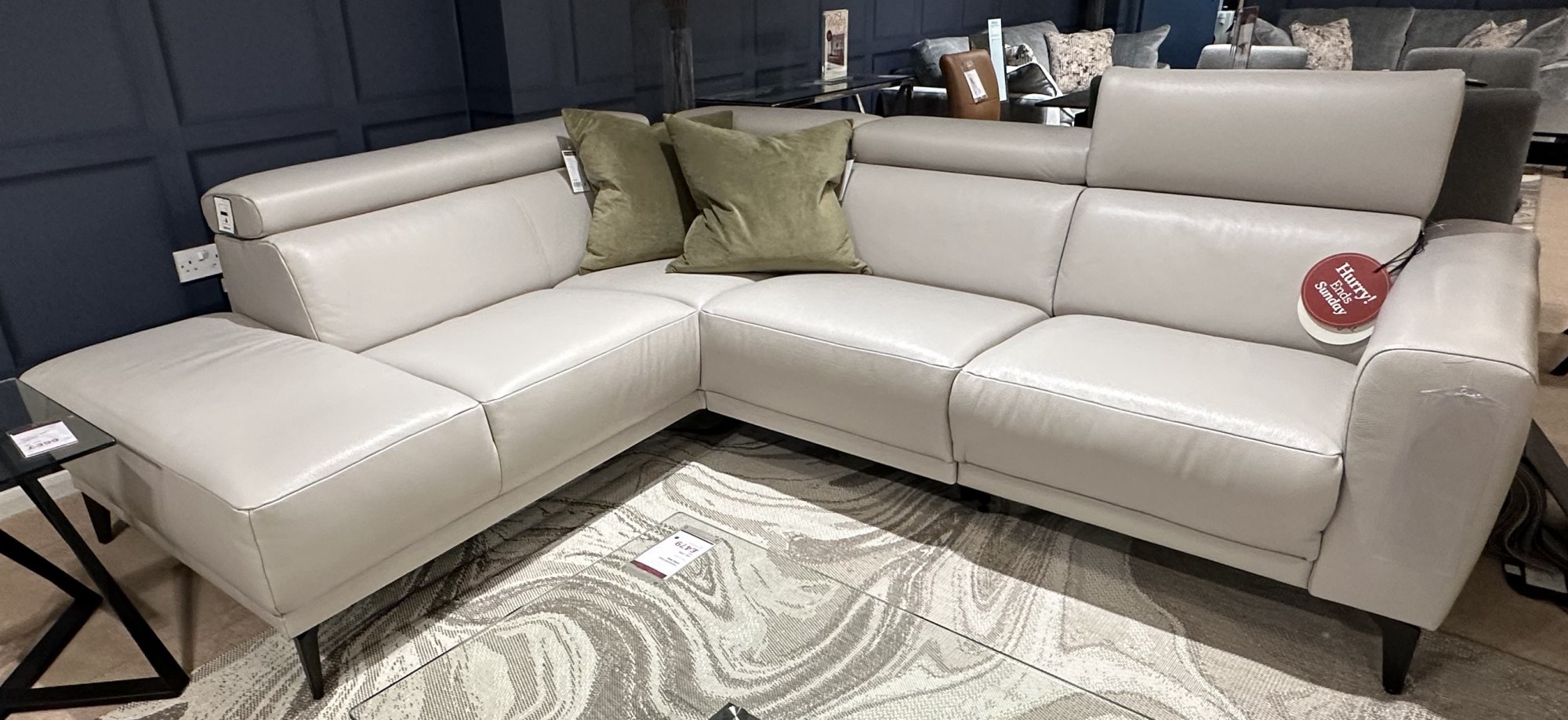 ATILLA- LHF Corner Sofa With Power Recliner in Soleda Silver Grey Leather