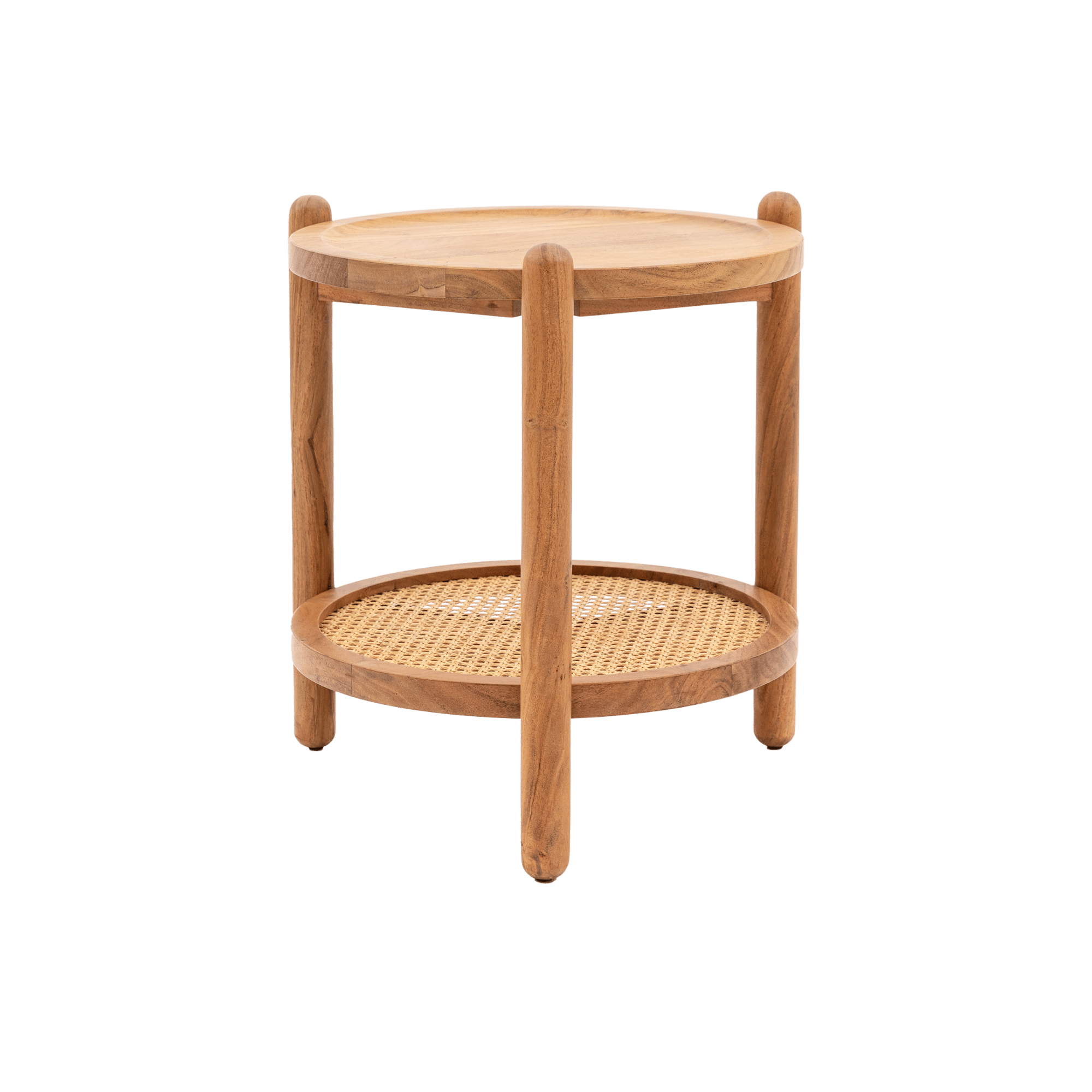 Acacia & Rattan Side Table – Retro Boho Style