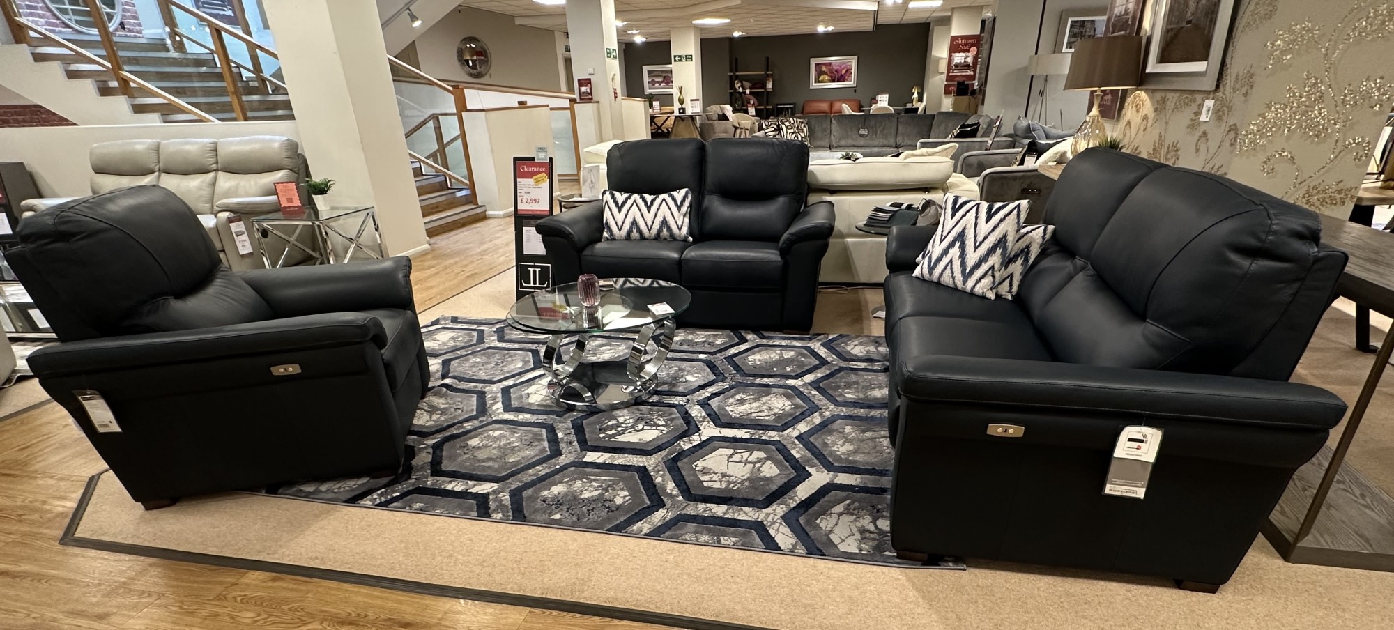 3 seater power recliner in S10 leather W200 D100 H97cm -2 seater fixed in S10 leather W160 D100 H97cm and Armchair power recliner inS10 leather W104 D100 H97cm