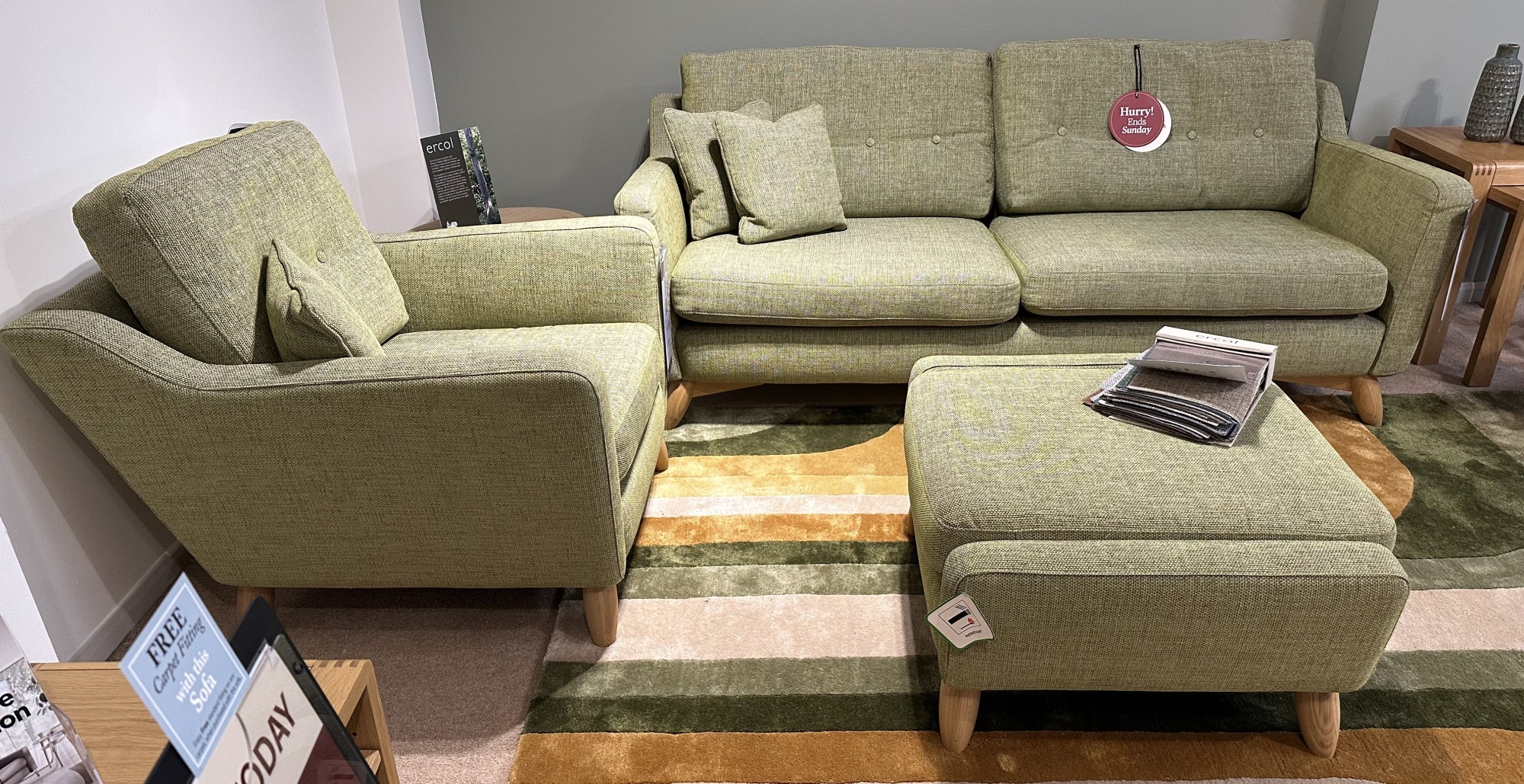 ERCOL- COSENZA LARGE SOFA, ARMCHAIR & FOOTSTOOL