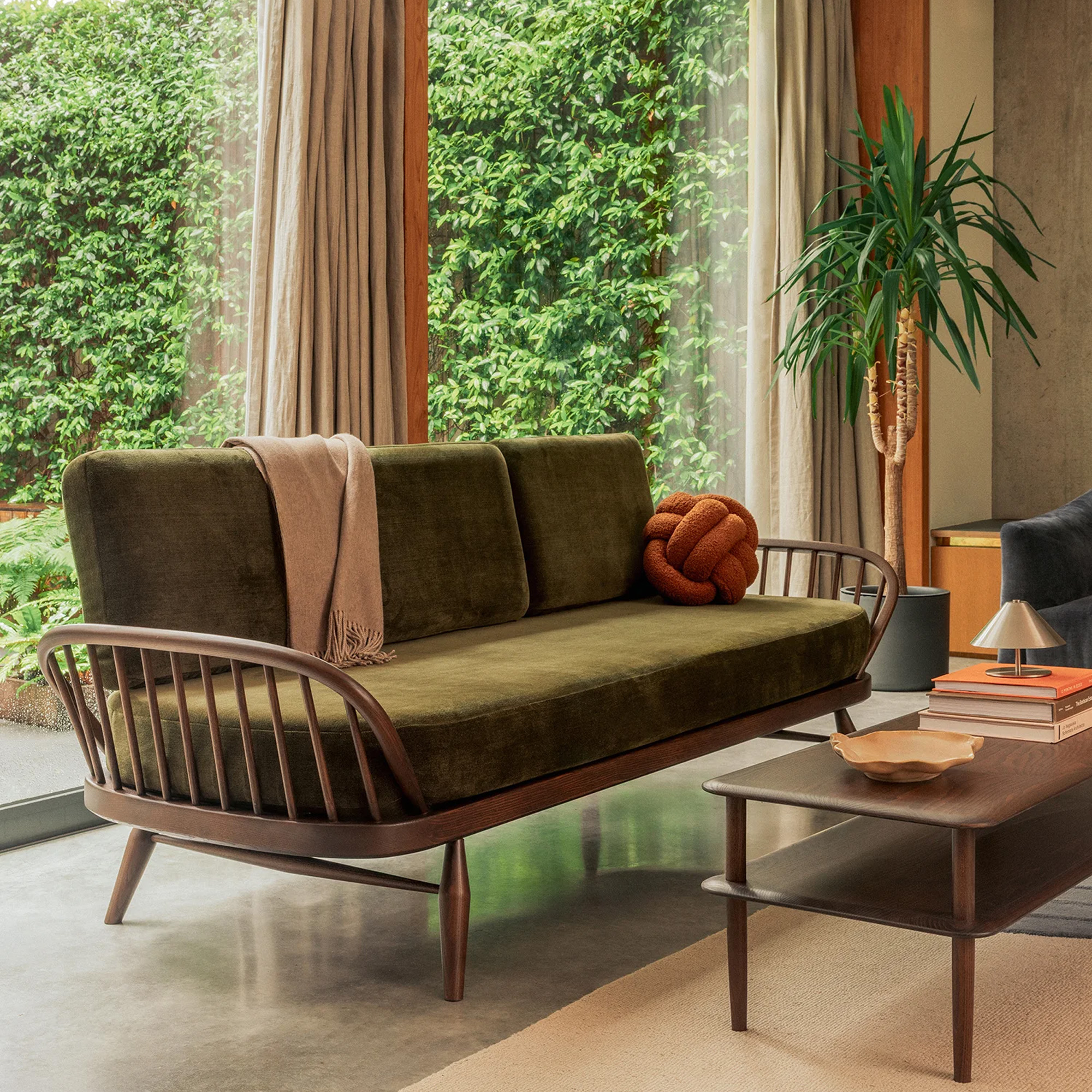 Designed by Lucian Ercolani in 1956, the Studio coach is a timeless icon of comfort and craftsmanship. A standout from Ercol's early design portfolio, it combines nostalgic charm with practical elegance, offering a seat that welcomes relaxation and quiet contemplation.
