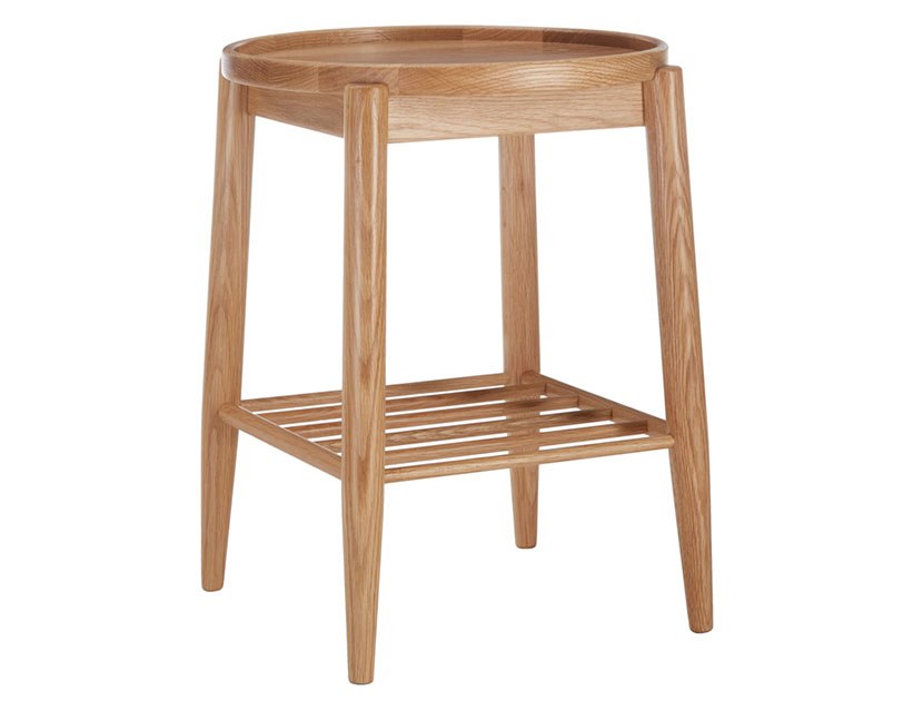 Incorporates a non-removable tray-edge top Slatted shelf for storage Classic tapered legs Finished in a clear dead matt lacquerProduct Specification