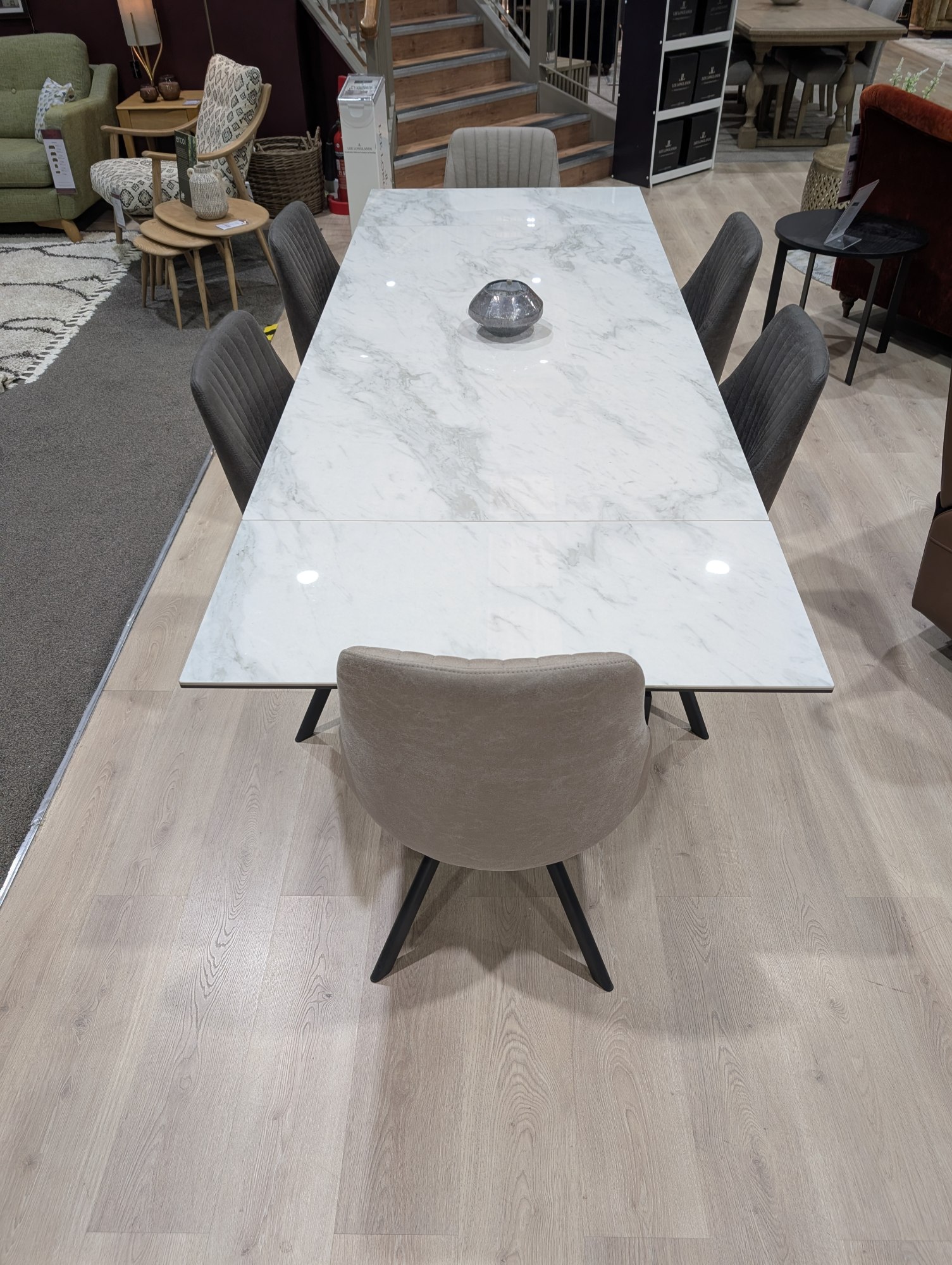 Francesca, Extending Dining Table (white) with 6x Dallas Chairs