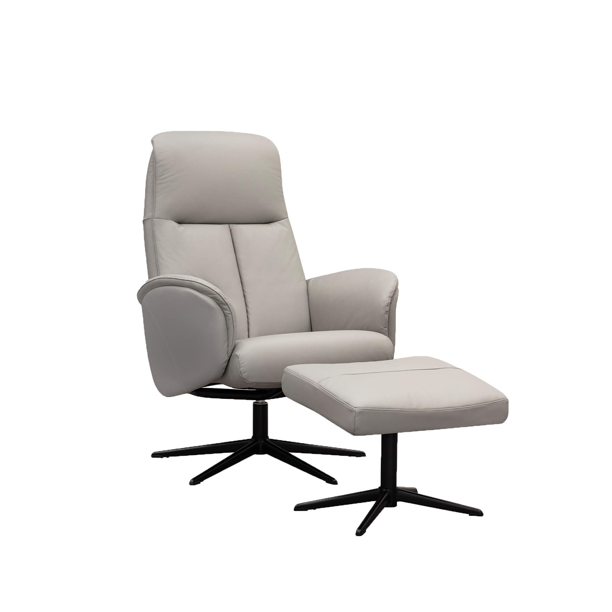 The G Plan Nysted Manual Recliner & Stool set with polished base combines sleek Scandinavian-inspired design with outstanding comfort. The armchair features a full 360° swivel and a smooth, manual recline function operated via a tension wheel for effortless adjustment. Paired with a matching stool, this set allows you to sit back, raise your feet and unwind in style. With the polished chrome (or optionally black) base, and choice of fabrics or leathers, the Nysted is perfect for contemporary living rooms demanding both form and function.