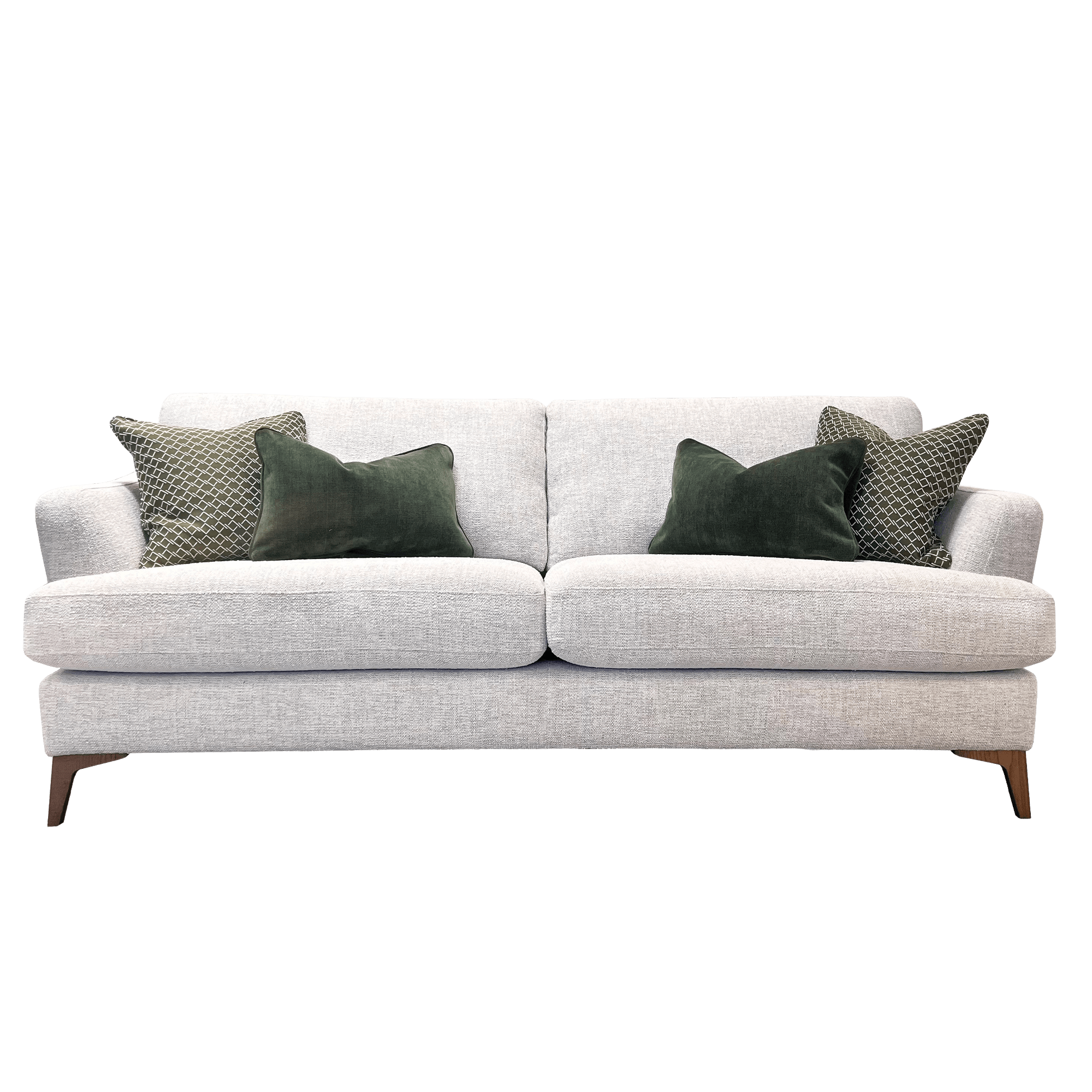 - Available in brushed chrome or solid wood feet in light or smoke finishes