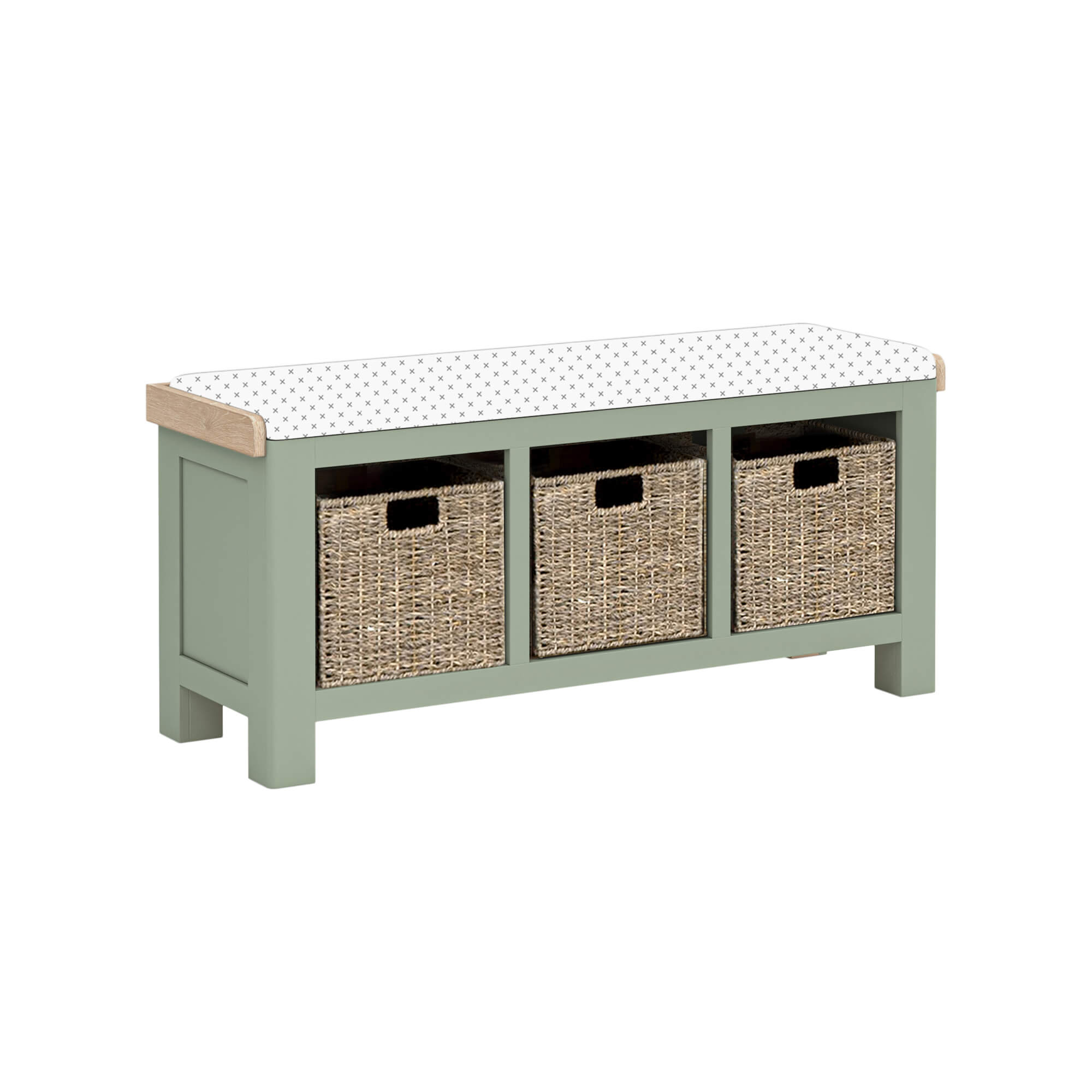 The Harbour Sage Storage Bench is a stylish and practical piece designed to bring classic character and useful extra storage to the home. Using the matched Salcombe range for sourcing, it features a soft sage painted finish with contrasting oak tops, creating a calm, relaxed look that works beautifully in both traditional and more contemporary interiors. Furniture World describes the Salcombe collection as painted with oak tops, with the oak finished in a durable white wash oil to give the range a soft aesthetic. The collection is also designed to bridge the gap between traditional and contemporary interiors, with chunky proportions and generous storage that give it a reassuringly solid and timeless feel. As a storage bench, it is especially useful in a hallway, dining space or living area, offering a practical place to sit while helping keep everyday items neatly tucked away.