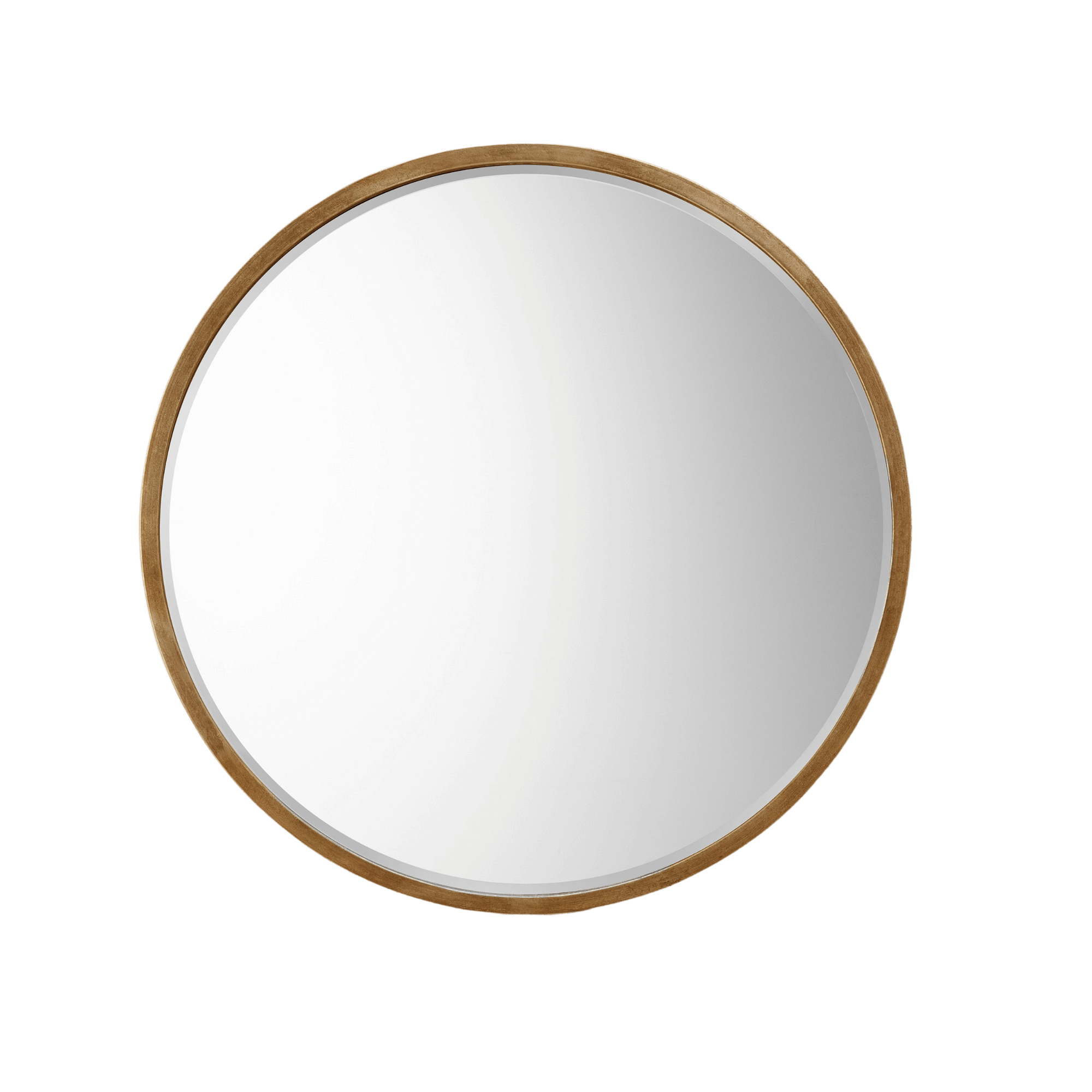 Sleek and stylish, this round wall mirror showcases a slim antique gold metal frame and a bevelled centre mirror, creating a striking and eye-catching focal point in any interior.