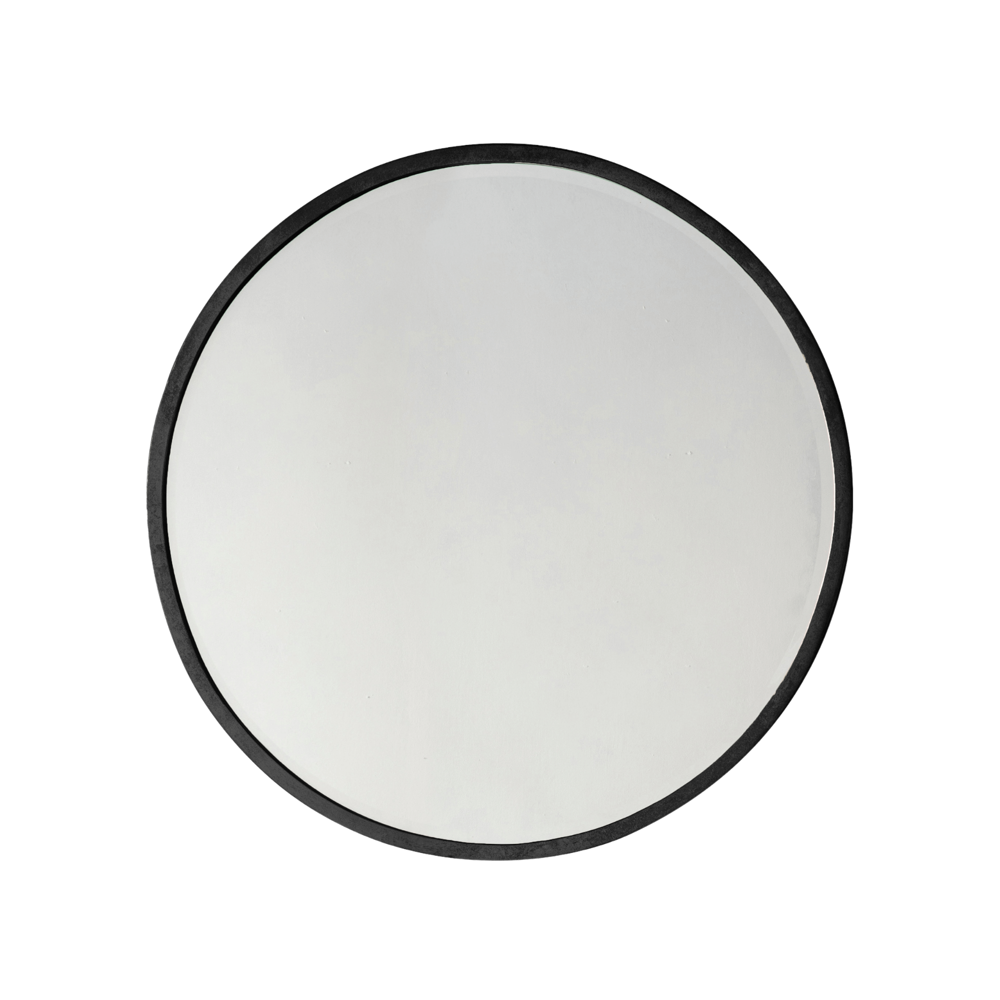 Sleek and stylish, this round wall mirror showcases a slim black metal frame and a bevelled centre mirror, creating a striking and eye-catching focal point in any interior.