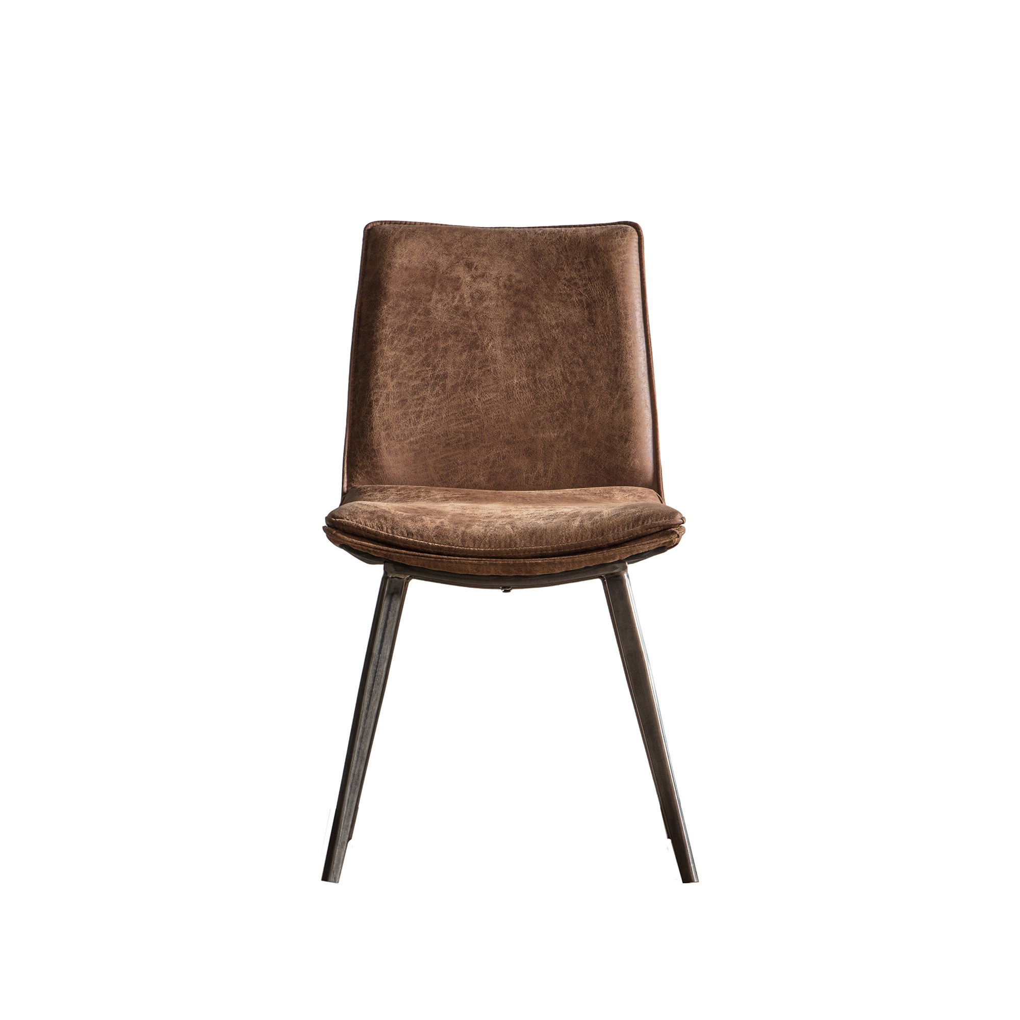 Upholstered in classic brown faux leather with stitched seam detailing, it combines comfort with refined style. Bronze finished metal legs add a subtle industrial touch, making it suitable for both modern and traditional interiors.