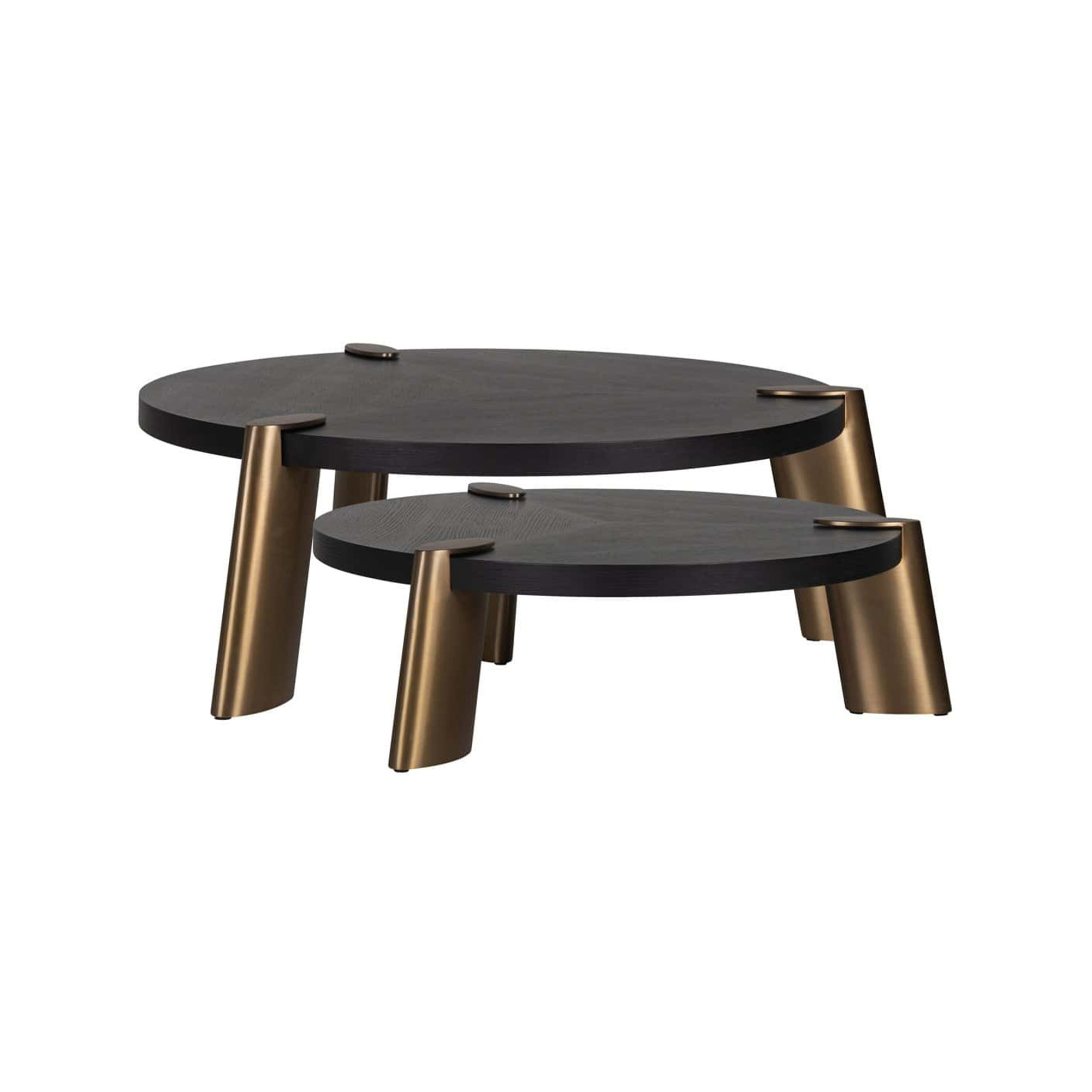 Add a touch of luxury to your living space with the Kayla Coffee Table Set of 2. Elegant curves and brushed gold details create a modern, relaxed look, while the oak veneer with patterned inlay adds warmth and texture.