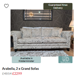 The showroom is open 7 days a week, with late night shopping Monday & Thursday. The showroom is furnished with all of our stunning collections, at prices that won't be beaten anywhere on the high street or elsewhere on the internet.
