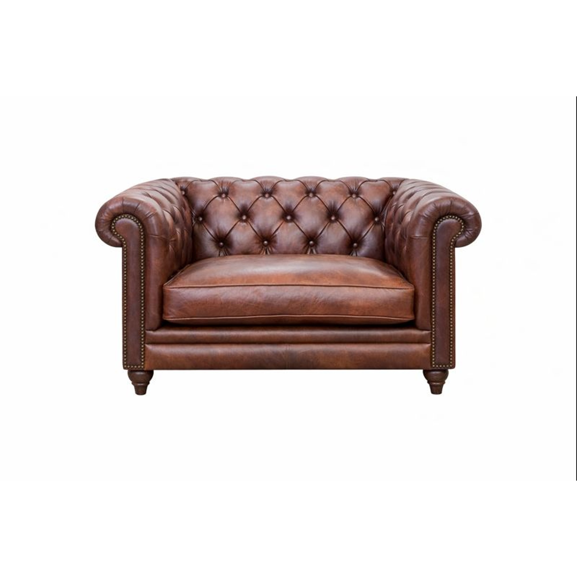 Classic Chesterfield silhouette with deep button-tufted back and inner arms