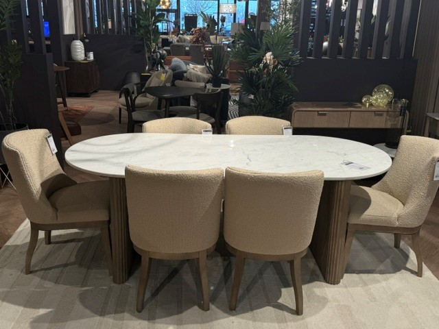 Marmo Marble Top Table + 6 Klevedon Boucle Chairs