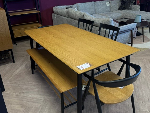 Monza Medium Extending Table + 2 Como Chairs + 2 Dining Chairs + Bench