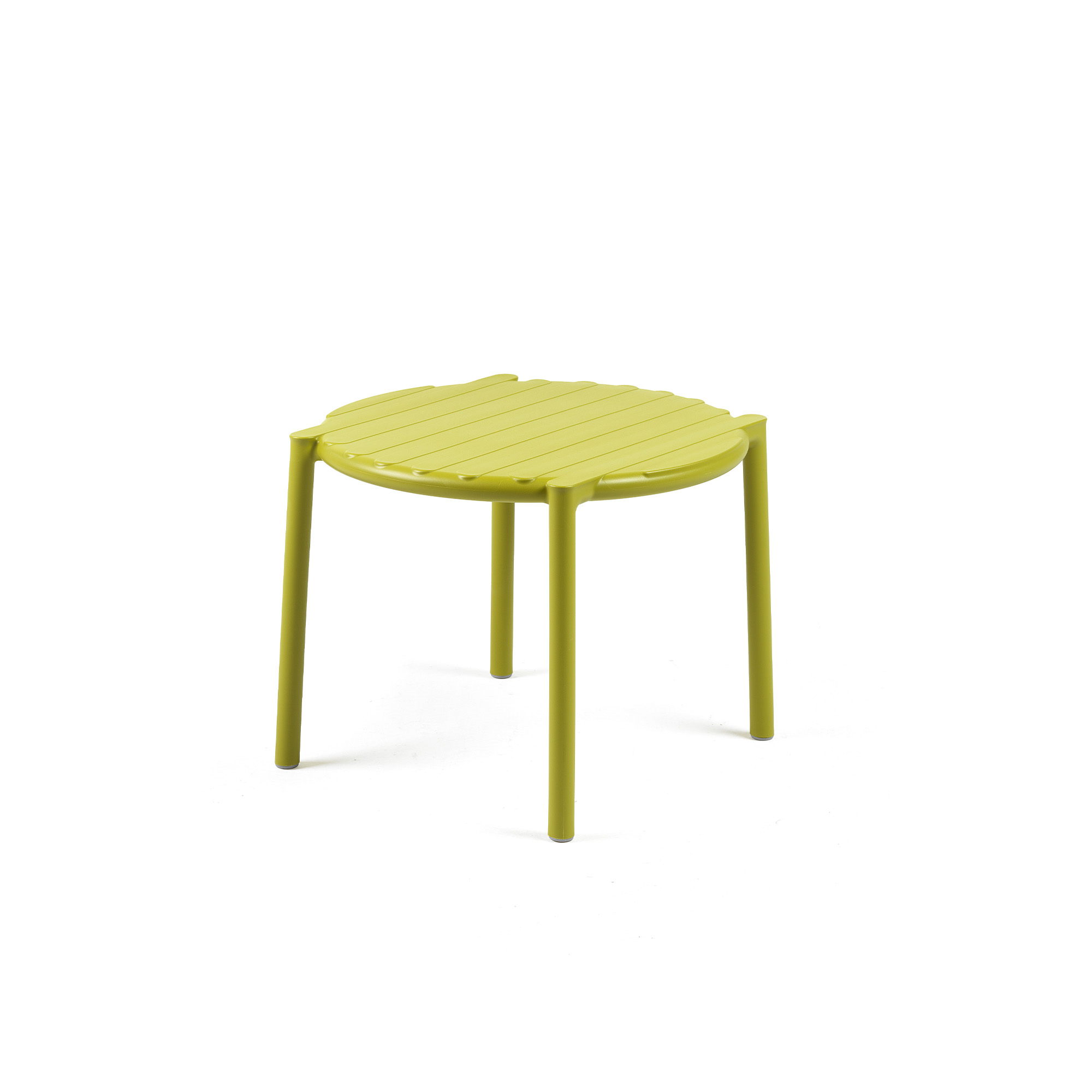 The Doga side table in pera colour offers a contemporary interpretation of classic slatted design. Crafted as a monobloc low table with a refined round top, its lightweight structure makes it both practical and stylish for modern living. Designed for versatility, it is easy to move, stackable for convenient storage, and simple to maintain. Making it ideal for both indoor and outdoor settings.