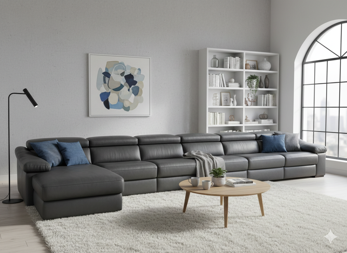 Natuzzi Gioia 6 Seater Chaise Leather Electric Reclining Sofa Group