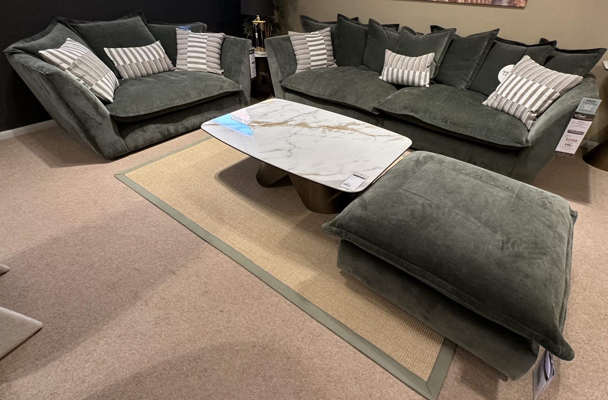 Extra Large Sofa -W278cm D110cm H91cm, Snuggler W168cm D110cm H91cm and Combi Stool 82X82cm H45cm