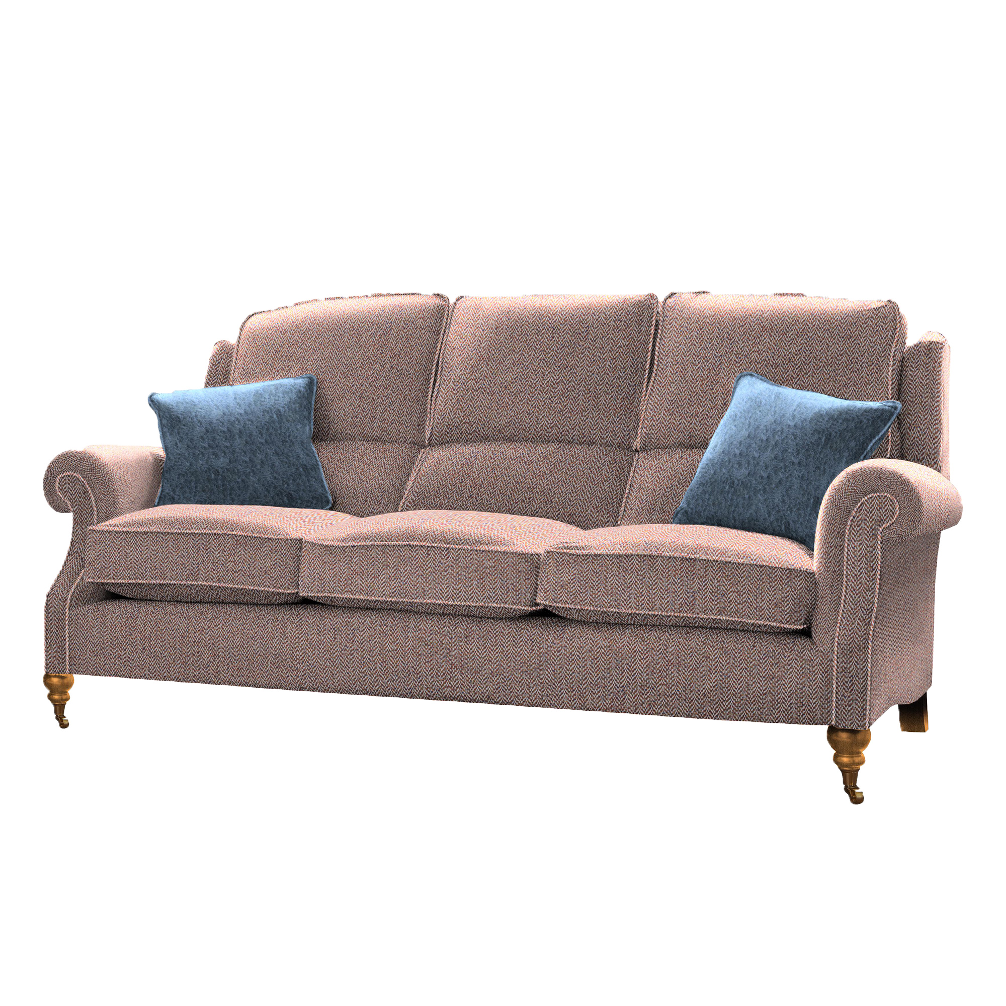 The Oakham 3 Seater combines timeless design with practical comfort thanks to options in seat interiors like Encore Fibre or traditional foam, letting you choose a feel that suits your preference. Classic detailing such as turned wood or brass castors and optional leg finishes help complete a refined look.