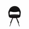 Complementing the table are four Jasmine Misty Dining Chairs in textured black boucle fabric. These chairs offer a modern, tactile finish that contrasts elegantly with the marble top. Featuring contrast stitching, turned wooden legs, and a black powder-coated metal base, they embody both comfort and design confidence. The supportive backrest and ergonomic proportions make them ideal for long, relaxed meals.