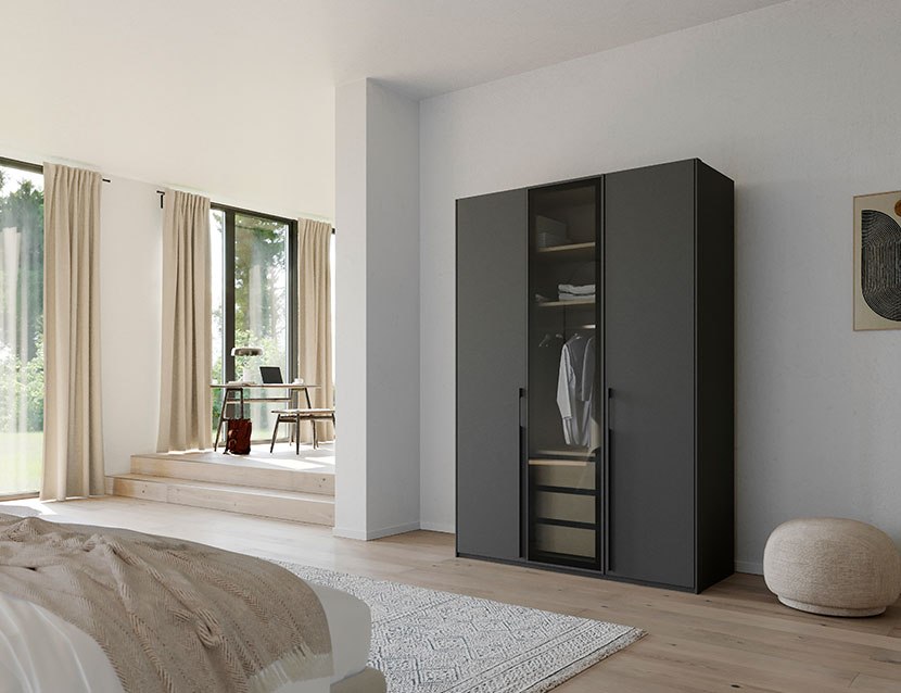 Pure: Long handles in carcase colour for a sleek look. Modern Sophistication: Choose from 3 carcase colour options for a touch of sophistication and elegance. Sleek, contemporary design exudes modern charm. Ample Storage Space: Generous storage space with 4 doors to keep your clothes and accessories organized. Equipped with hanging rails, shelves, and drawers for easy accessibility.