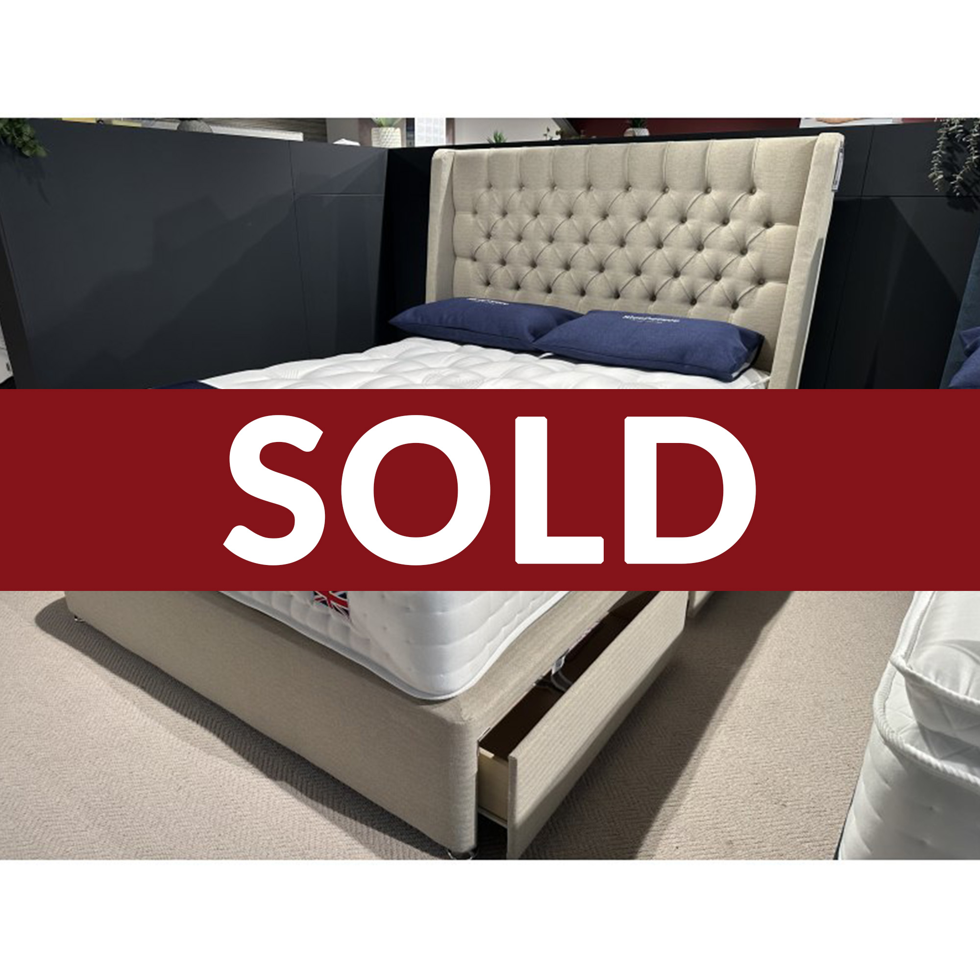 Sleepeeze Shaftsbury 5ft Mattress with Carnaby 2+2 drawer Divan Bed and Blossom Headboard in Biscuit