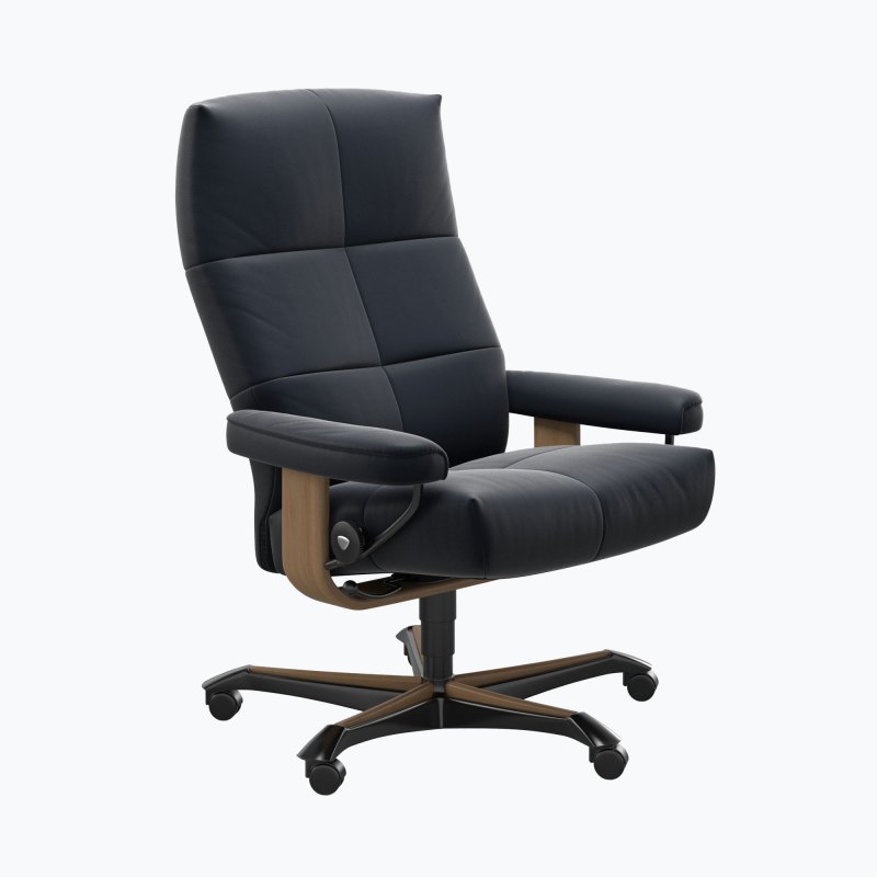 Ergonomic Excellence: The Stressless David Office Chair offers unparalleled ergonomic support for both work and relaxation Unique Plus System: Enjoy maximum neck and lumbar support, with the added bonus of a convenient sleep function Effortless Adjustment: The chair's Glide system lets you easily fine-tune your sitting position using your body weight Office Mobility: With a base equipped with wheels and adjustable seat height, you have the flexibility you need to create your ideal workspace.