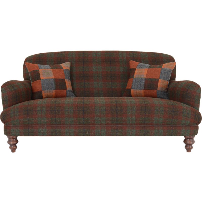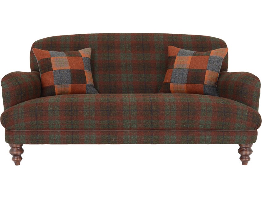 Made in the UK Hardwood frame Coil sprung seat Feather filled seat cushions Hide piping Polished hardwood feet Feather filled scatters Choice of 100% pure virgin wool Shown in Forrest Check with Old Bard Hide pipingProduct Specification