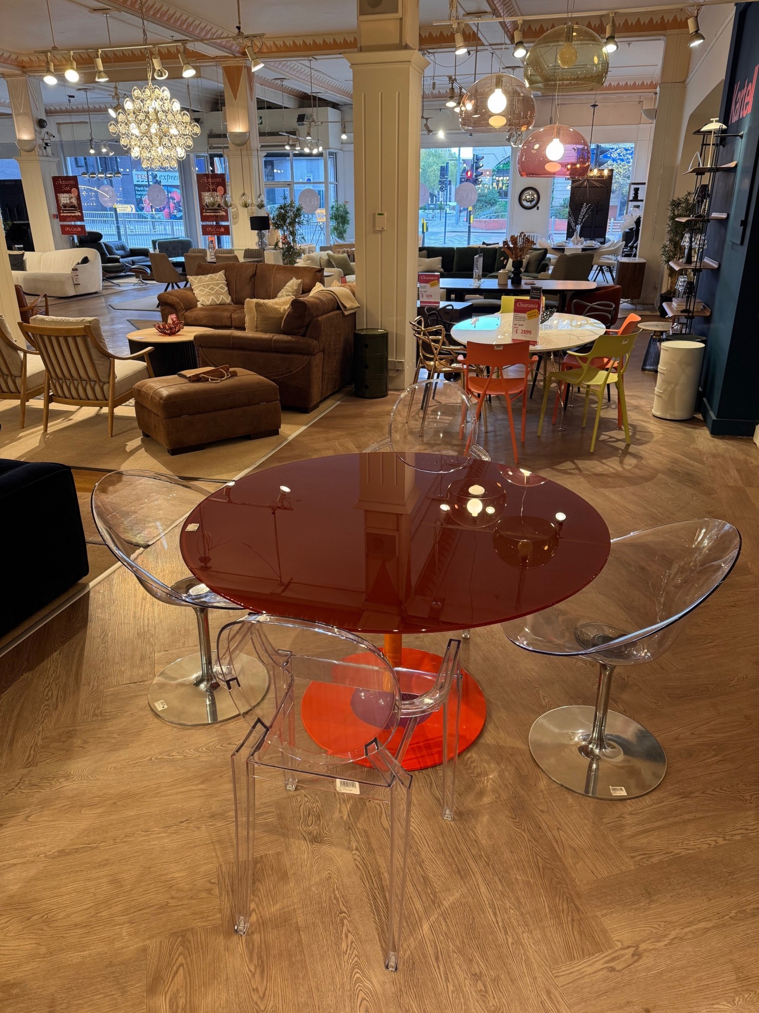 Thierry round table with 2 x Louis Ghost chair and 2 x Eros chairs.