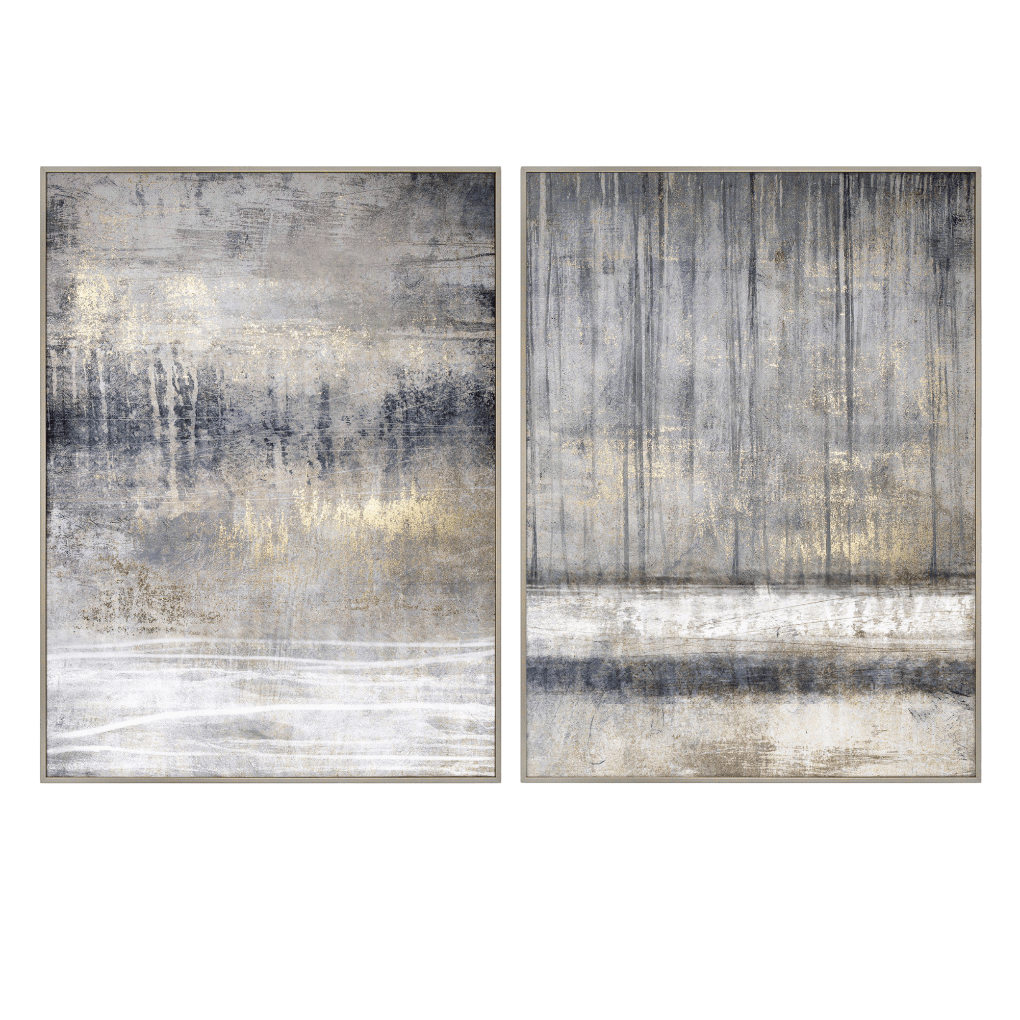 Set of 2 Abstract Framed Canvases | Grey, Indigo & Gold Art