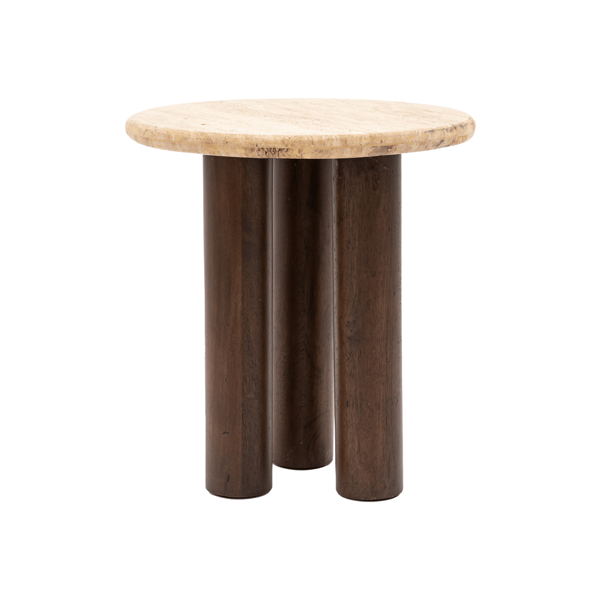 Travertine Side Table with Mango Wood Legs
