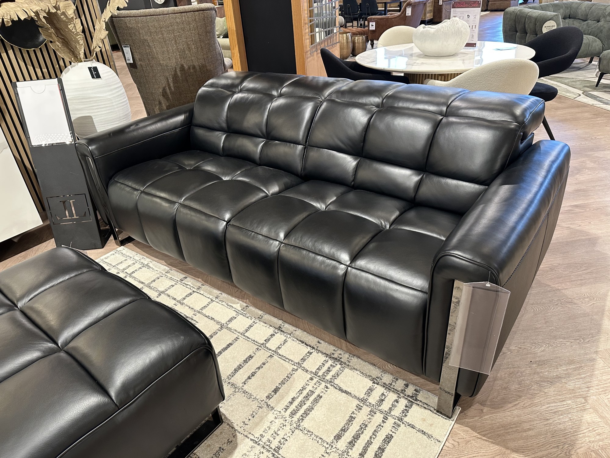 Viviana 3 Seater, Chair and Bench Stool in Black Leather