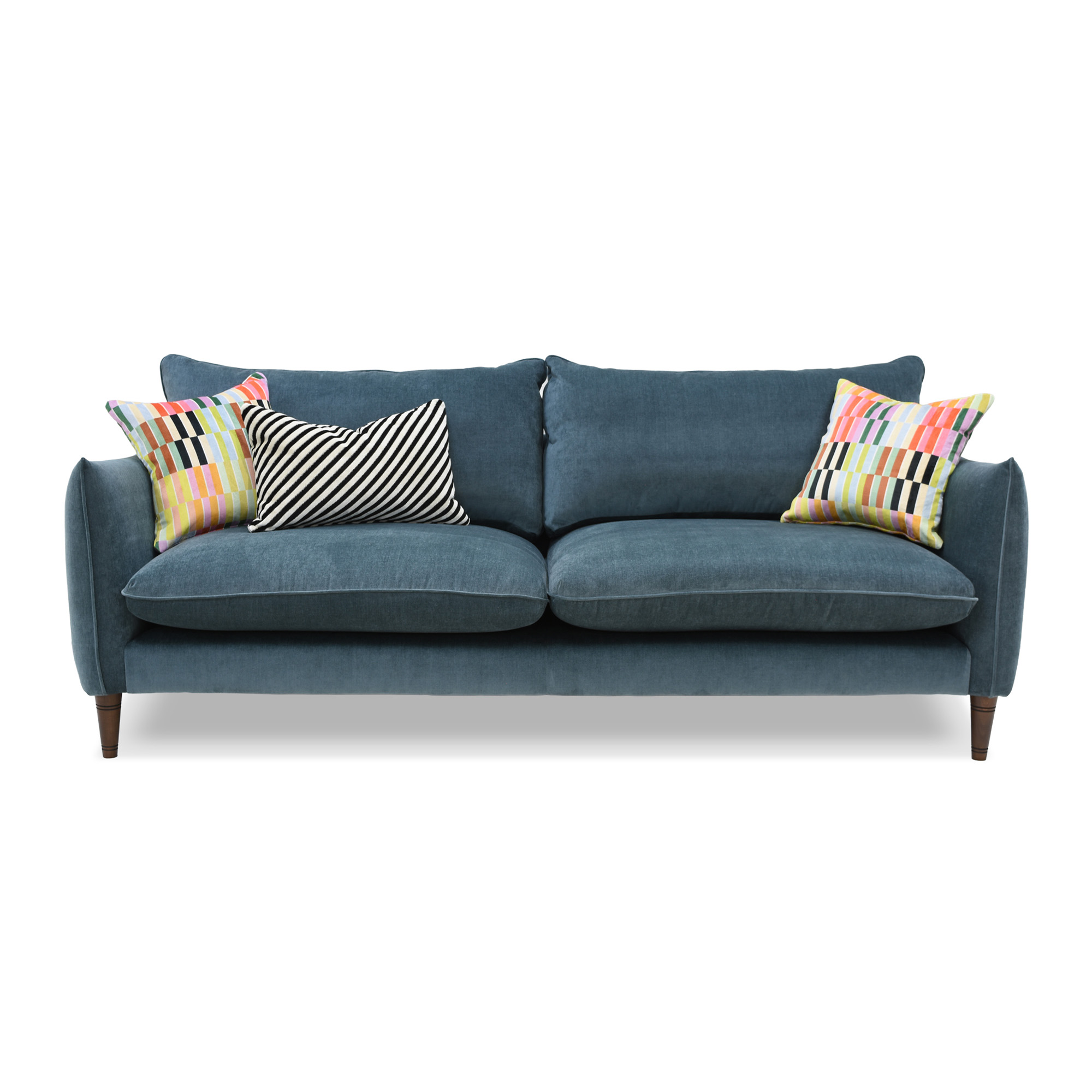 Trendy, bold and full of personality, the Vogue Williams Kenmare Extra Large Sofa reflects a confident approach to colour and contemporary design. Its charming silhouette is defined by sleek dipped arms and neatly balanced proportions, creating a piece that feels both playful and refined. Raised on solid wood legs, the design maintains a light, elegant profile while offering a comfortable place to relax. A fixed seat cushion with a foam and Dacron interior provides supportive comfort, making the Kenmare a characterful yet practical choice for modern living spaces.