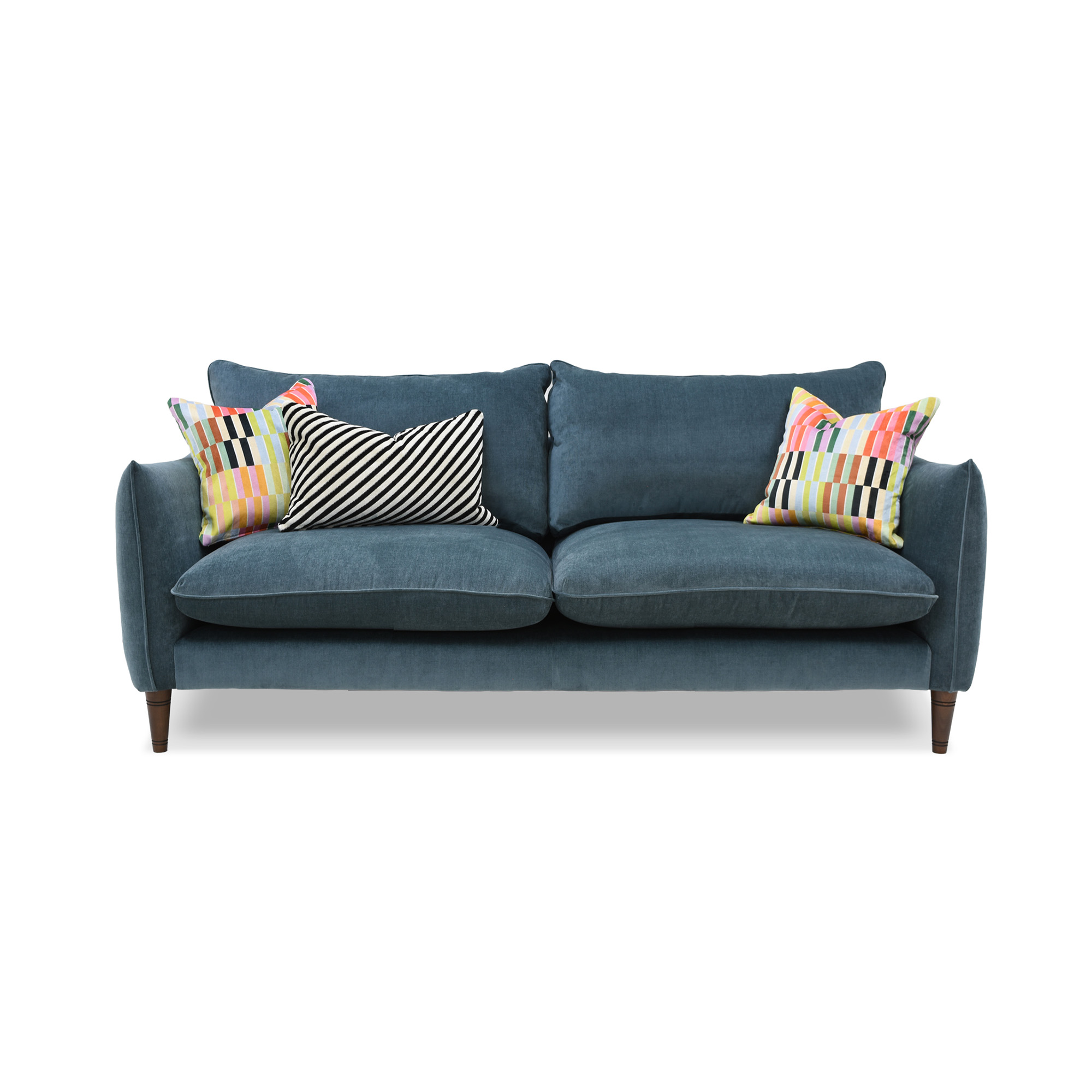 Trendy, bold and full of personality, the Vogue Williams Kenmare Large Sofa reflects a confident approach to colour and contemporary design. Its charming silhouette is defined by sleek dipped arms and neatly balanced proportions, creating a piece that feels both playful and refined. Raised on solid wood legs, the design maintains a light, elegant profile while offering a comfortable place to relax. A fixed seat cushion with a foam and Dacron interior provides supportive comfort, making the Kenmare a characterful yet practical choice for modern living spaces.