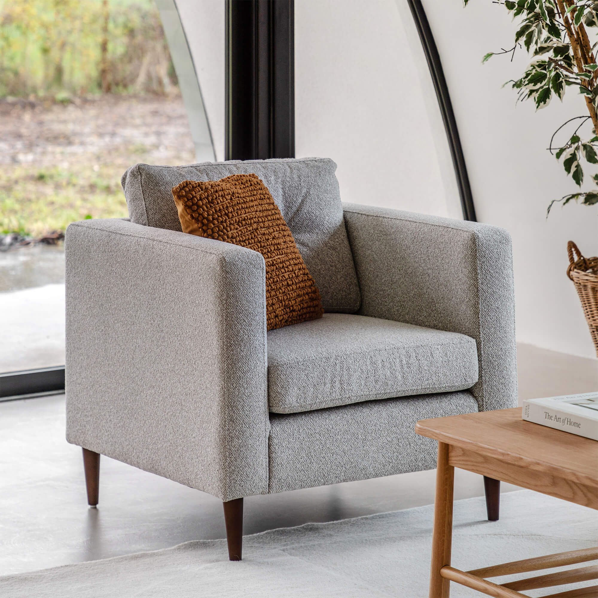 Its clean-lined silhouette is complemented by generous cushioning and supportive seating, creating a relaxed yet refined aesthetic. Perfect for living rooms, bedrooms or reading corners, the Whitwell Armchair provides a comfortable place to unwind while adding understated modern elegance to your home.